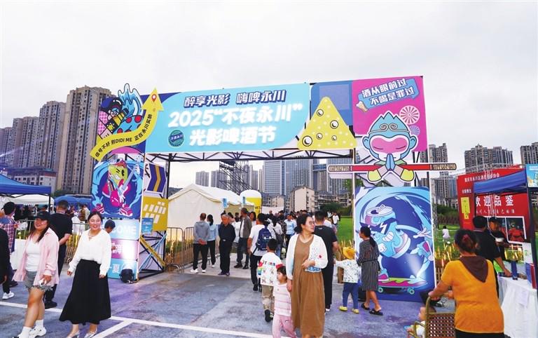 9月的永川,暑热渐退,晚风送爽。9月19日傍晚,永川国际会展中心草坪上,人群汇聚,空气中飘来的淡淡茶香与浓郁的麦芽香早已撩拨起人们的期待。当夕阳西下,华灯初上时,2025“不夜永川”光影啤酒节在万众欢呼声中精彩启幕。这场持续3天的狂欢盛宴,将用醇香的啤酒、特色的美食与炫彩的光影,编织出永川最动人的初秋夜曲。