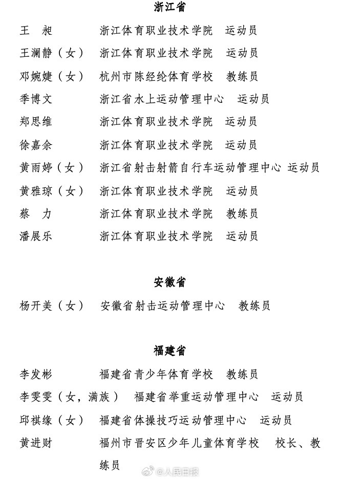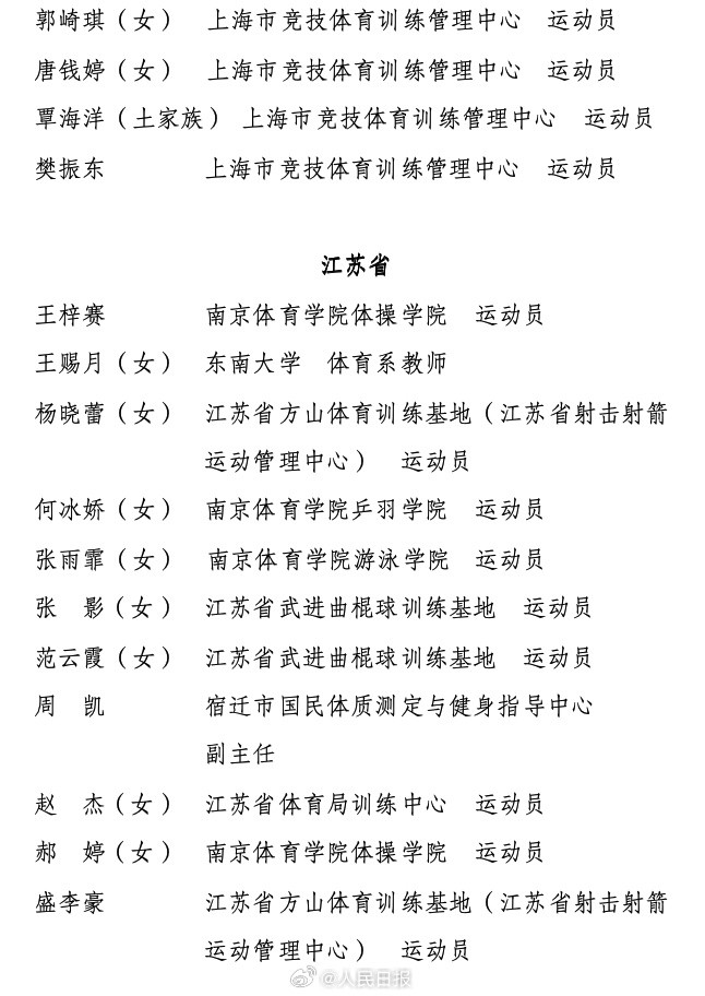 其中公示对象包含孙颖莎、樊振东、马龙、王楚钦、王曼昱、覃海洋、隋文静、武大靖、盛李豪、潘展乐、全红婵、陈芋汐、唐钱婷、张雨霏、王昶、梁伟铿、郑思维、黄雅琼、陈梦、郑钦文等运动员。