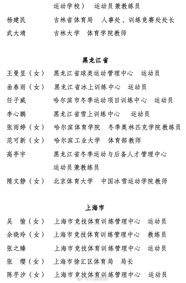 根据全国体育系统先进集体和先进个人评选表彰工作安排牛达人配资,经逐级推荐和评选,全国体育系统先进集体和先进个人评选表彰工作领导小组审核,拟表彰全国体育系统先进集体67个、先进个人162名。