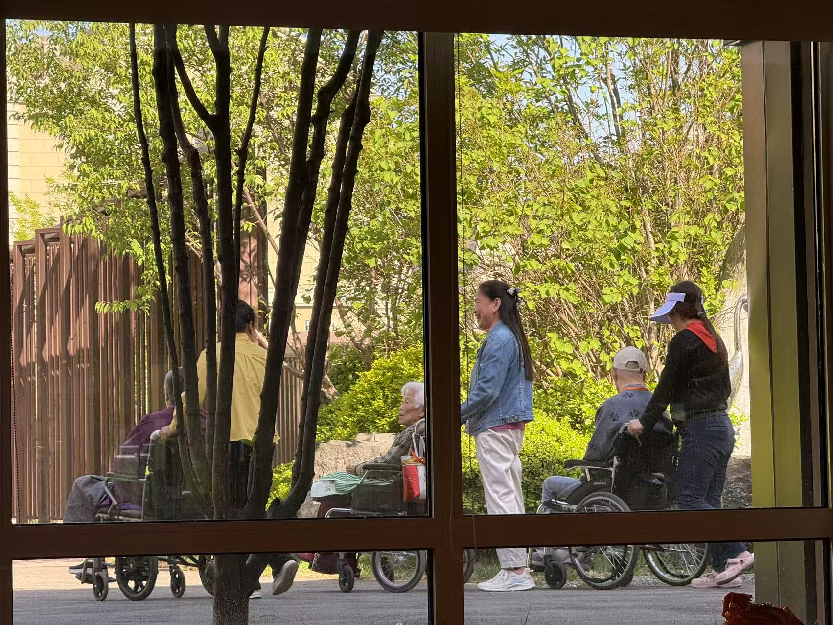 整体望去,“和园”并不像一家传统意义上的“养老院”,该社区由七栋学院风的建筑围合而成,与周边的别墅居民区融为一体。临街首层是公共服务区,进入大门做完消毒后,进入眼帘的是城市咖啡厅般的空间,唯一不同的是,坐在这里的,大多是白发苍苍的老人。